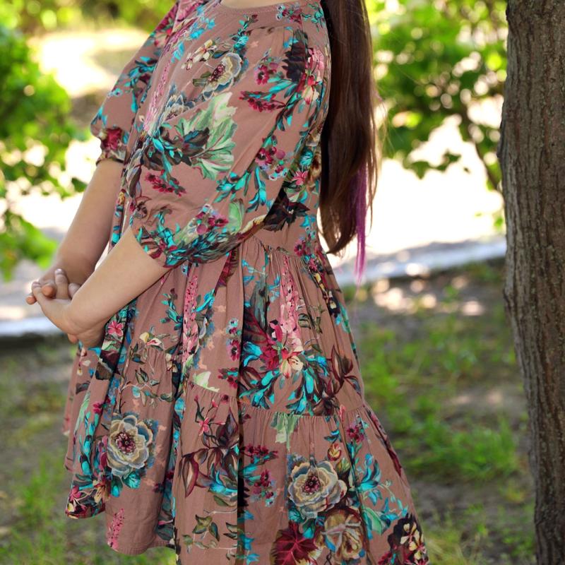 платье на девочку 7 лет 122см, Next, асимметричная длина, юбка солнце, рукав на резинке фонариком. без дефектов, 100% коттон.