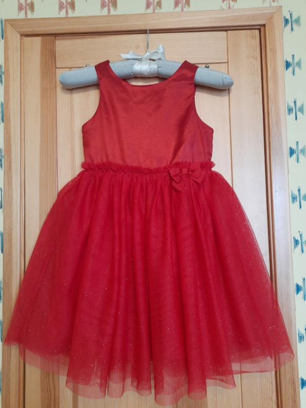 Нарядное платье H&M на рост 128,плечи 25,ПОГ 32,ПОТ 31,длина 74,рукав кимоно,застежка -гузвики на спине,юбка 3-х слойная,верх фатен с люрексом,в талию рюшка с бантом