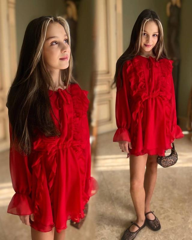 Невероятно красивое платье Тканина: шифон Замеры: рукав от плеча/ длина/ пог 134 - 47/ 63/ 32 140 - 49/66/33 146 - 51/70/34 152 - 53/76/35 158 - 55/82/36