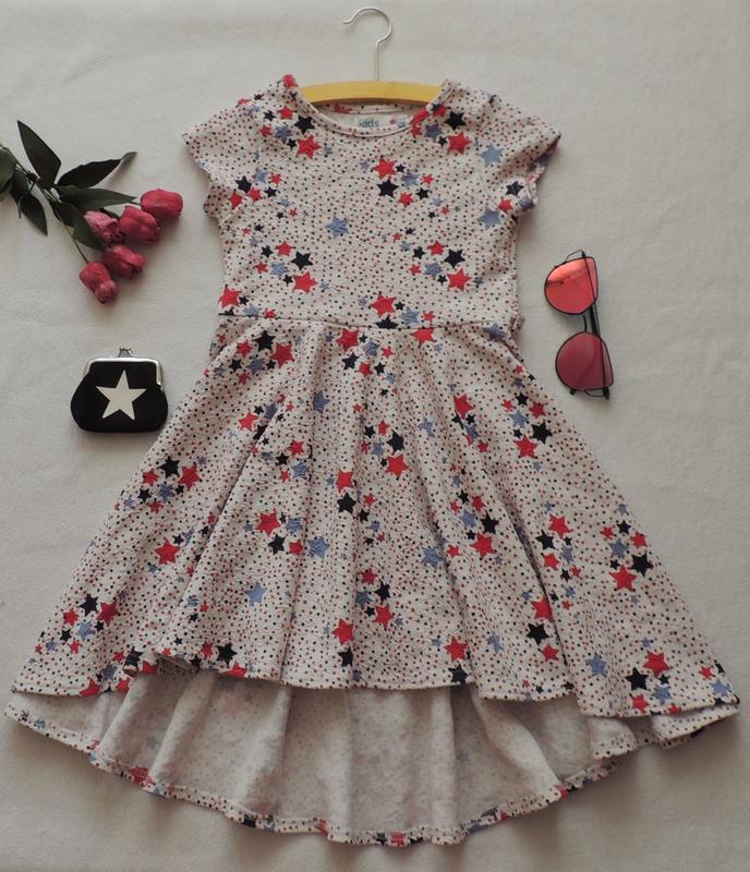сарафан платье в звезды не натуральное и прозрачное под мышки от 30 до 37 в талии резинка можно продеть пасок есть петли.стан очень хороший дефектов не виявлено.