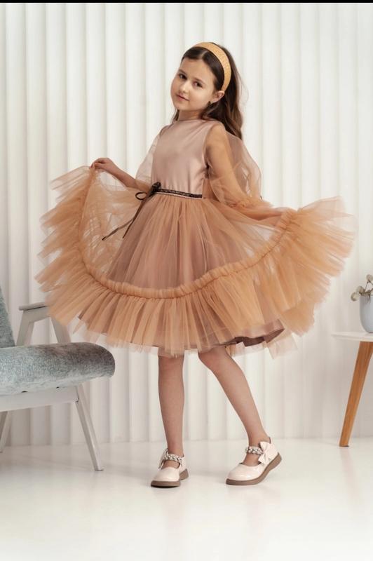 Сукня для принцес! Ткань - королевский атлас, евросетка. По спинке застегивается на молнию. Рукав - 3/4. цвет - КАПУЧИНО. Замеры: 122 длина - 71см, полуобхват груди - 34см. 128 длина - 74см, полуобхват груди - 34см. 134 длина - 78см, полуобхват груди - 36см. 140 длина - 83см, полуобхват груди - 38см 146 длина - 87см, полуобхват груди - 40см Мс