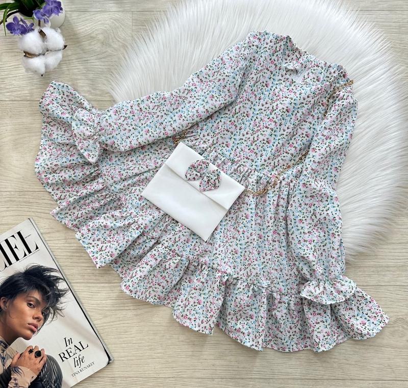 Невероятное цветочное платье 🌸🌸🌸 Воздушная, нежная и стильная 🩷🩷🩷 Пышная юбка 😍 В комплекте сумочка 👛 Сзади застежка пуговица 👌🏻В рукавчиках резиночка ☺️ Тканина: софт 💓 Производитель: Украина 🇺🇦 ЗАМІРИ +/-1-2см!!! ▪р.98- длина от плеча 56см/ рукав от плечевого шва 36см / ПОГ 27см / длина юбки ▪р.110- длина от плеча 63см/ рукав от плечевого шва 40см / ПОГ 30см/длина юбки 37см ▪р.116- длина от плеча 66см/ рукав от плечевого шва 42см / ПОГ 32см/длина юбки 39см ▪р.122- длина от плеча 67см/ рукав от плечевого шва 44см / ПОГ 32см / длина юбки 41см