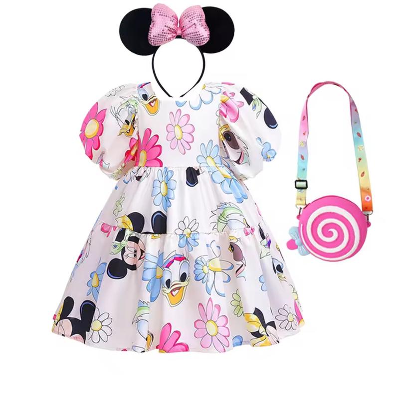Нарядное платье с героями disney в комплекте с сумочкой и ободком
