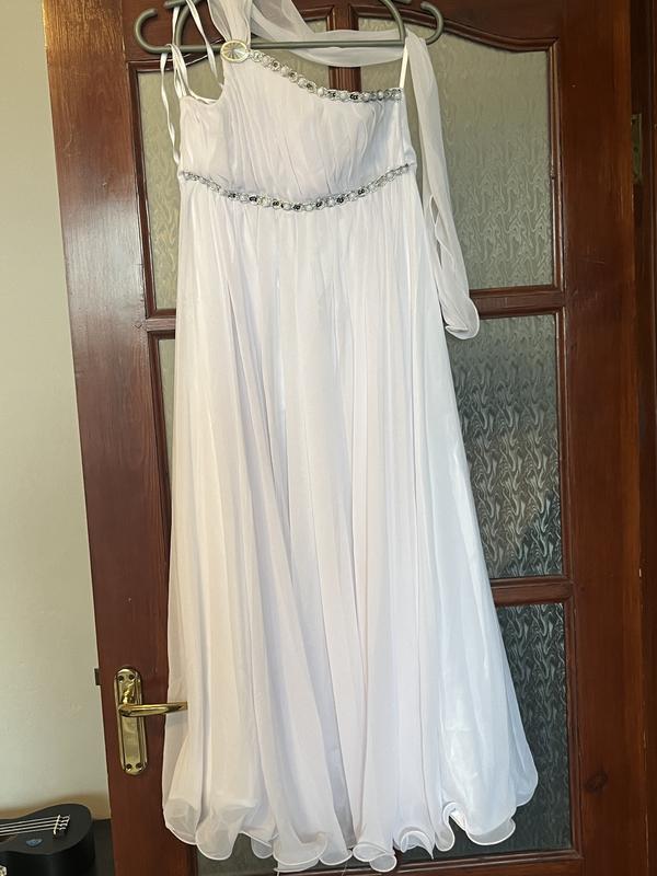 Белое шелковое платье на подростка. Дочка однажды одевала для выступления. Совершенно новинка, без повреждений. Затягивается шнуровкой в виде корсетов и идет на одно плечо. По поводу замеров длины и тд пишите в частные уведомления, буду рада помочь. Обращайтесь за дополнительной информацией.