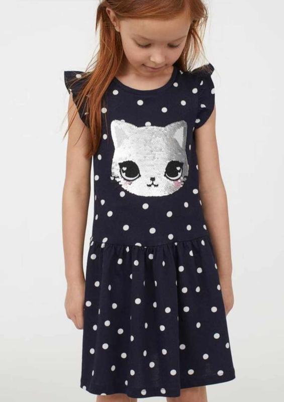 Сукня з м'якого бавовняного трикотажу з паєток спереду . З короткими рукавами з воланами, зібраним швом на талії та злегка розширеною спідницею. Розмір в наявності : 98/104 Заміри за запитом . На всі питання відповім Накладений платіж по передоплаті 180 грн Обміну та повернення немає!