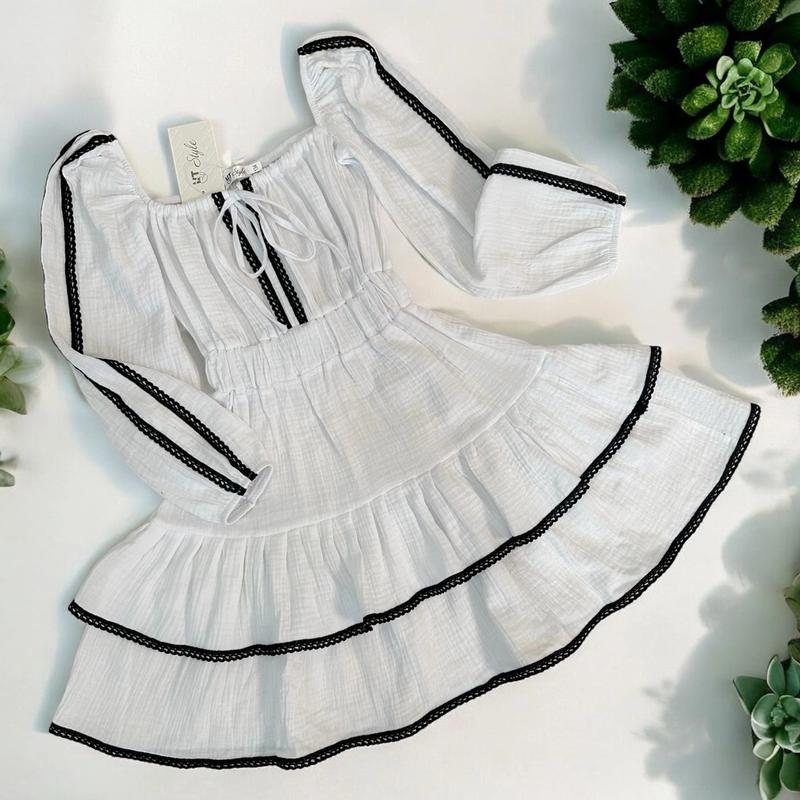 Красивое и нежное платье ткань муслин Прикрашена мереживом Легкая и приятная к телу в поясе под резинку КАЧЕСТВО ЧУДОВА!! РЕКОМЕНДУЮ!!! длина от плеча/пог/рукав 134/69/30/49 140/72/32/50 146/74/35/53 152/79/37/54 158/80/38/56