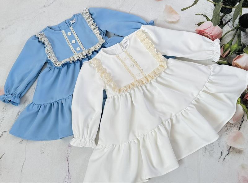 Платье Размеры:92,98,104,110,116 Ткань: текстиль костюмка «Барби» Цена: 730 грн Молочный Голубой