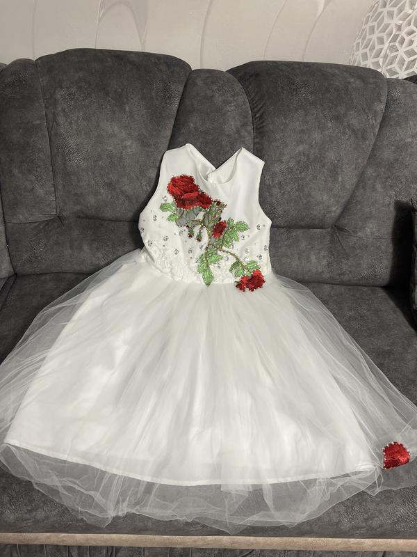 Нарядне платтячко. Можна для причастя . Вишивка машинна Довжина 85 см, довжина фатину 55 см