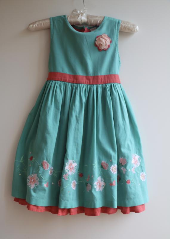 Продаю бирюзово- коралловое платье John Lewis - очень изысканное и яркое. Подойдет на девочку 5-6 лет (замеры ниже и на фото). Отличное качество - полностью коттон, очень легкий и приятный. Есть контрасный коралловый подклад, красиво украшенная по низу юбки вышитыми цветами, сзади удобная молния к поясу (легко надевать). Стан - отличный, ребенок одел несколько раз. Замеры: - Длина по центру спины: 66 см - Длина от плеча: 66 см - Длина юбки (от талии): 45 см - Талия: 32 см - Объем груди: 33 см Цена - 190 грн Пересилаю