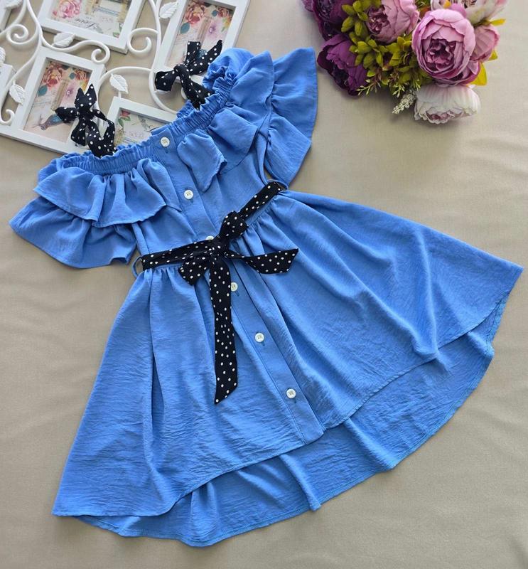 ЗУСТРІЧАЙ ЛІТО РАЗОМ З НАМИ 🌞🤩🌞 Дуже красива сукня з валанами. 👗 Тканина: амеріканська кріп-жатка, виробництва Туреччина Легка Тканина, не парить Застібається на ґудзики, по талії, та плечах гумка, має дуже гарну розтяжимість (+-10см) Додатково пояс у комплекті. Довжина регулюється зав'язками. Розмір 110-164 Ціна 645грн
