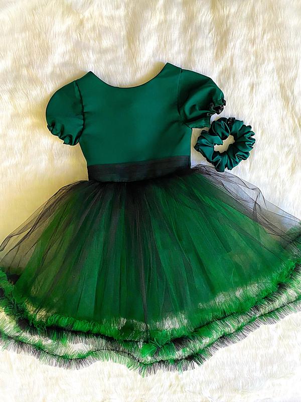 Платье для девочек темнозеленого, изумрудного и черного цвета. Сзади на молнии и шнуровке в подарок к платью идет шелковая резинка, не повреждающая и не затягивающая волосы! Пожалуйста проверяйте внимательно на поште, потому что товар возврата не подлежит. Вдалих вам покупок!)