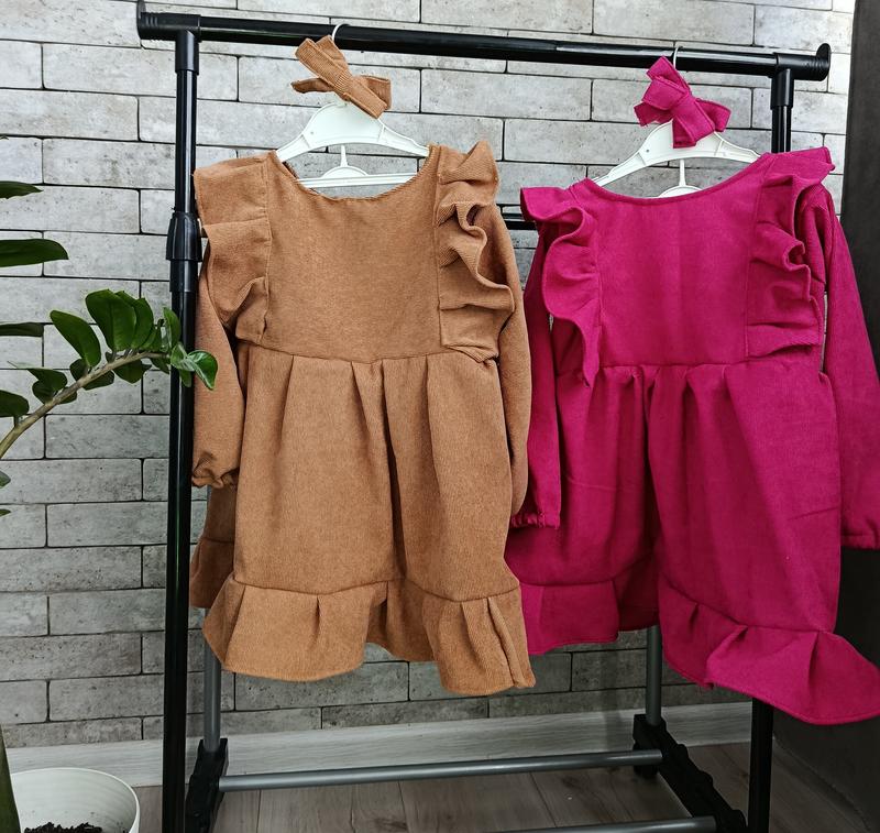 Яркое платье для девочек🩷 В комплекте с бантиком🎀 В двух кольорах Сезон весна, осень, также подойдет на прохладное лето ⭐ Микро вельвет, тоненький не плотный вельвет. Размеры ✅ 104 и 110