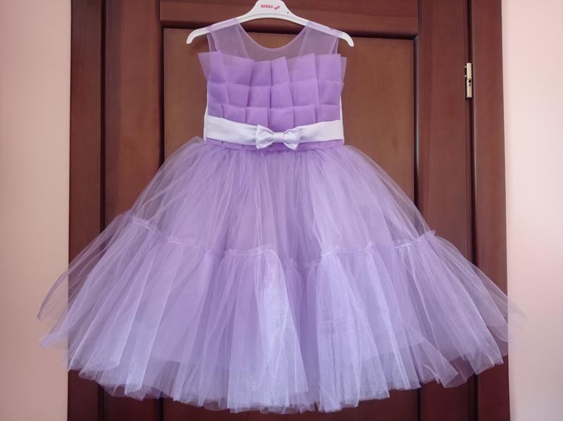 Новое очень красивое платье на выпускной. Современный дизайн, пышный фатин. На спинке есть корсет для утяжки. Размер 116-128. Замеры: длина 78 см, талия 31 см, от плеча до талии 29 см.