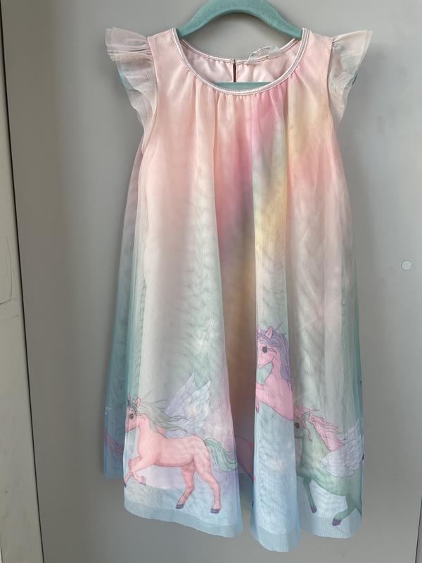 Платье с единорогами Два слоя фатина + подкладка Длина по спине 60 см Ширина в груди- самое узкое место 32 см