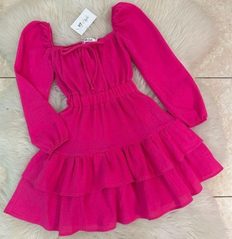 Красива сукня ткань муслин легкая и приятная к телу в поясе широкая резиночка Хорошее качество! рост/длина от плеча/пог/рукав 134/69/30/49 146/74/35/53 м. кид.Зн.