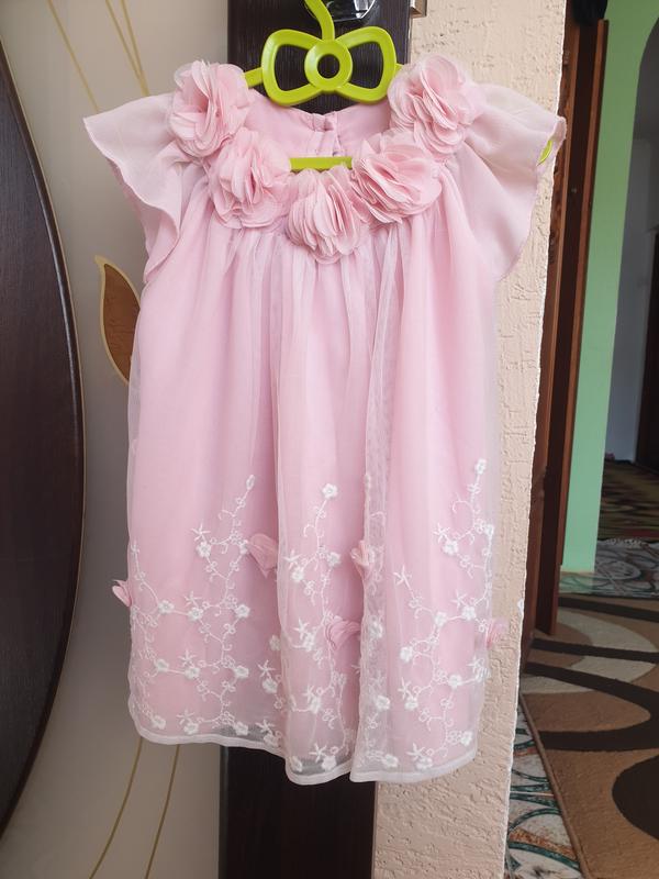 Платье нежное, красивое, летнее, удобное, приятное к телу. Стан идеален, без дефектов. Размер 9-12 месяцев.