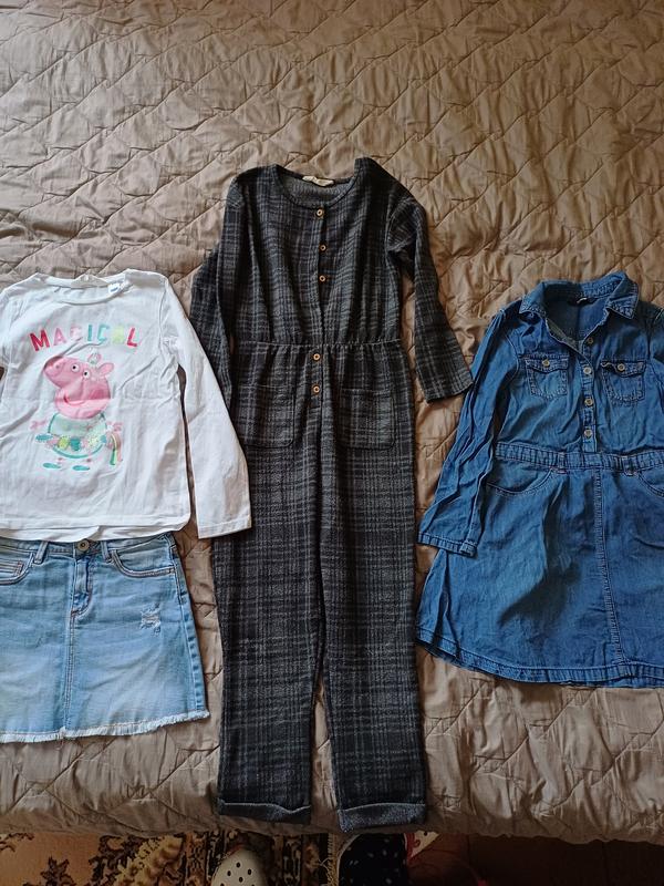Продам пакетом вещи на 6-8 лет. В пакете- платье джинсовое, джинсовая юбка, 2 реглана, костюм, комбинезон, вязаная жилетка, лосины. Загалом 8 речей. В подарок (если есть желание) отдам вещи исключительно для дома - лосины 2 шт, пижамы 2 шт, спортивный костюм.