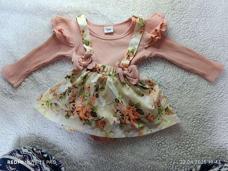 Детское платье с цветочками (бодик-платье) Размер:5-6 62-74 см Цвет:персикового цвета с цветочками Стан:10/10