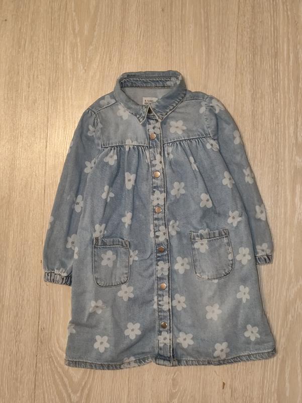 Фирменное, джинсовое платье-рубашка свободного кроя на 4-5 лет Застежка на пуговицу и кнопки спереди по всей длине Мягкая хлопковая ткань Рукава на эластичном манжете Передние накладные карманы Тканина 100% бавовна. Состояние отлично Замеры: длина по спинке от плеча 57,5 см, ширина между подмышками 37 см, плечи 27,5 см, рукав от плеча 36,5 см, по внутреннему шву 25,5 см