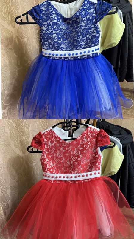 Сукні для дівчинки Розміру 92-98 Червона сукня нова 400 грн Синя вдягалась один раз , стан чудовий 350 грн На спині затягуються на шнурівку