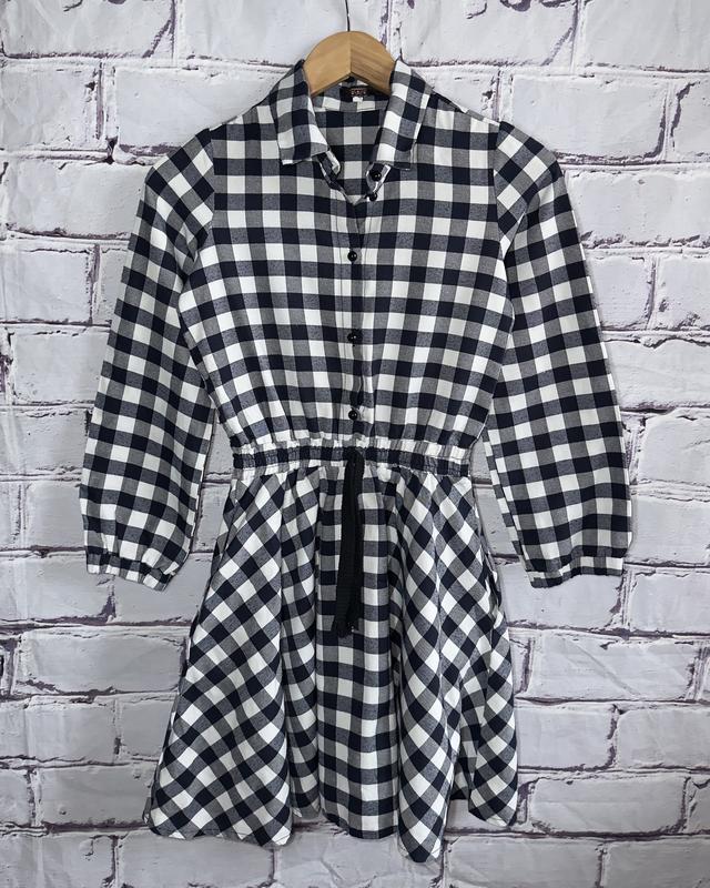 Дуже гарна чорно-біла сукня в клітинку в ідеальному стані🖤 Заміри: ПОГ 39 см ПОТ 27 см Довжина 80 см Довжина рукава 53 см На талії є резинка. На спідничці є кармани по бокам. Гарно сідає по фігурі. Обміну та повернення немає.