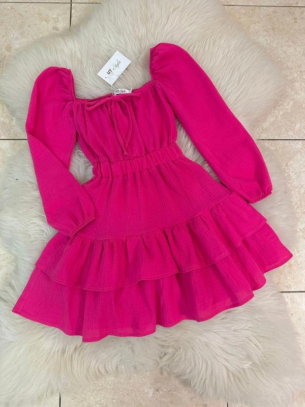 В наличии! Стильное и нежное платье для девушек. Мягкая, легкая и приятная к телу. Пояс на широкой резинке. Ткань - муслин (натуральная) Замеры: 134 длина от плеча - 69см, полуобхват груди - 30см, рукав от плеча - 49см.