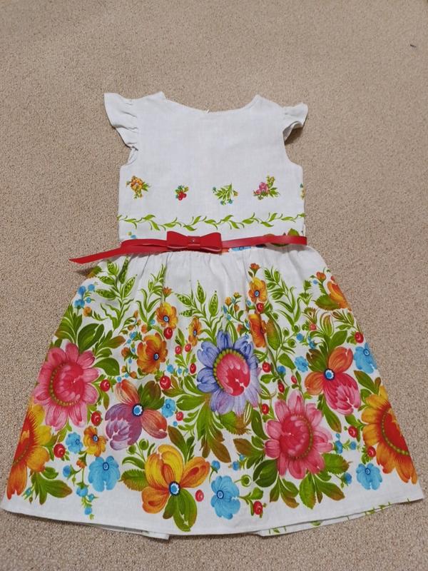 праздничное платье миди для девочки 7-8 лет, домотканное полотно с петриковской росписью