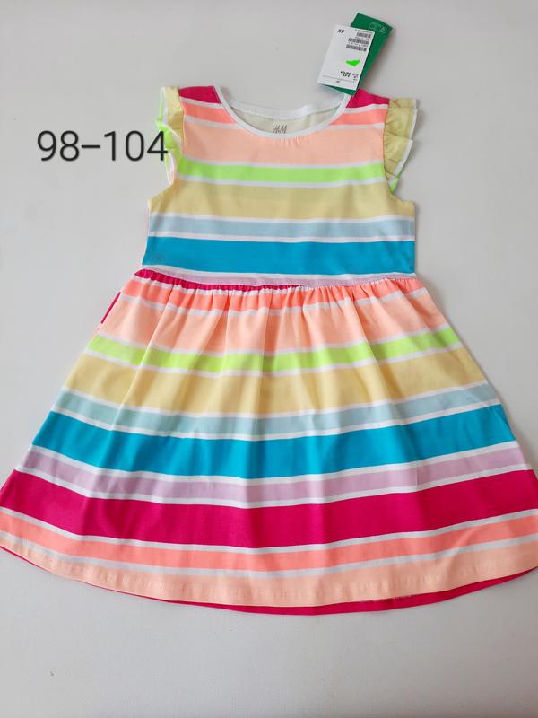 Летнее трикотажное платье H&M, отрезное по талии, с рюшами на плечах. Размер 98-104