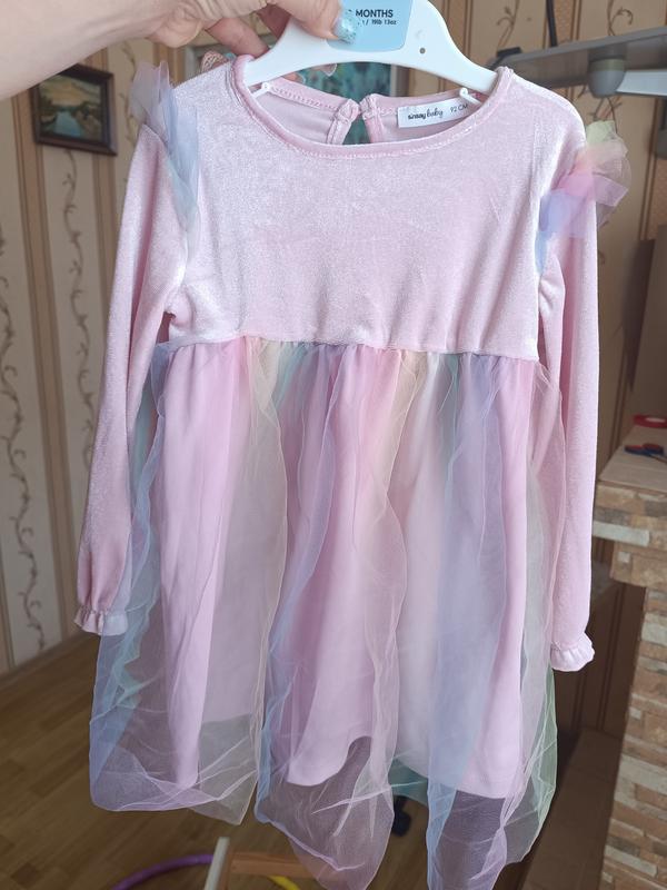 Платье с бабочкой на спинке. Низ фатин на подкладке, верх - тонкий велюр. Очень красиво смотрится. Размер 92 см.