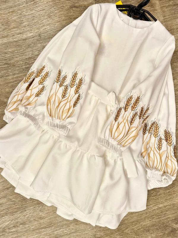 В наявності! Неймовірно гарна та ніжна сукня На рукавах ВИШИВКА!, не малюнок. По спинці застібається на блискавку. Пояс в комплекті. Тканина - костюмка барбі. Колір - МОЛОЧНИЙ. Заміри: 128 довжина-69см, напівобхват грудей - 33см, рукав - 45см. 134 довжина-71см, напівобхват грудей - 34см, рукав - 48см. 140 довжина-74см, напівобхват грудей - 36см, рукав - 50см. 146 довжина-77см, напівобхват грудей - 37см, рукав - 53см. 152 довжина-80см, напівобхват грудей - 38см, рукав - 56см. 158 довжина-83см, напівобхват грудей - 39см, рукав - 59см.