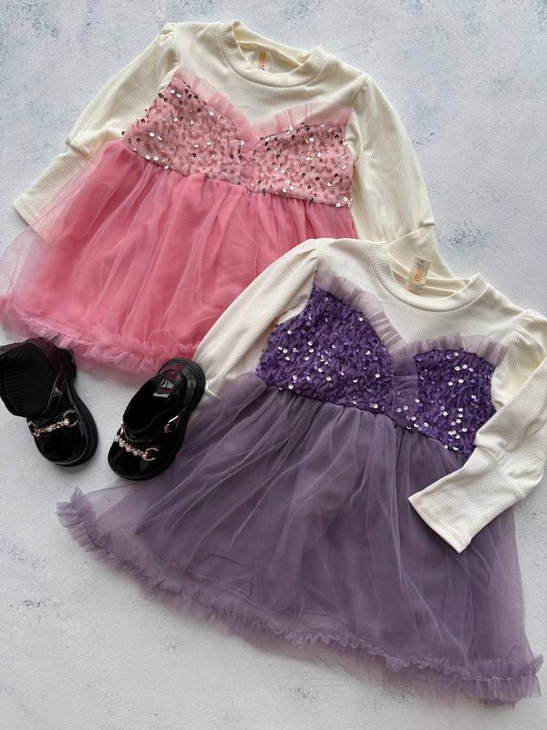 Паєтки гарно переливаються, зверху приємна , мягенька тканина. Є 2 шари фатину, до тіла бавовняна підкладка. Розміри в наявності: Р80(м) Довжина 42см, ширина 30см, довжина рукава від горловини 34см Р90(л) Довжина — 46см, ширина 30см, довжина рукава від горловини 36см Р100(хл) Довжина — 49см, ширина — 32см, довжина рукава від горловини 39см Р110(ххл) Довжина — 52см, ширина — 34см, довжина рукава від горловини 42см
