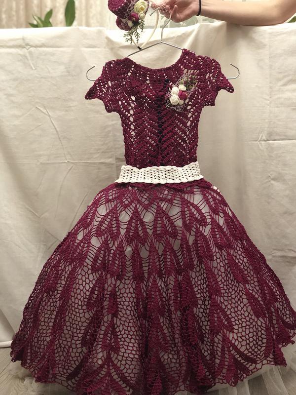 Неймовірна сукня, створена з любов’ю!💜 Повністю ручна робота: в’язаний верх і спідниця, нижній каркас із чотирьох шарів фати, пояс і брошка — все зроблено вручну спеціально для свята. • Розмір на зріст 134 см. • Одягалася 1-2 рази (останній дзвоник і фотосесія). • У комплекті: сукня (верх + спідниця), брошка, пояс, під’юбник і подарунок — оригінальний обідок-капелюшок! За додатковою інформацією звертайтеся у приватні повідомлення) Така сукня — не просто одяг, а особлива історія, в якій кожна петелька створена з любов’ю. Ціна — 750 грн (разом з усім комплектом!)