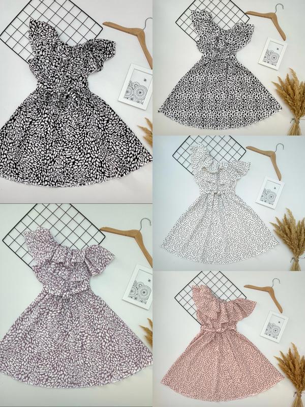 Воздушное летнее платье для принцессы, ткань супер софт, одно плечо спущенное, в талии есть резиночка, поясок в комплекте. Рекомендую ир рост/длина/пог похибка+-2см 134/73/33-2шт 140/75/36-1шт