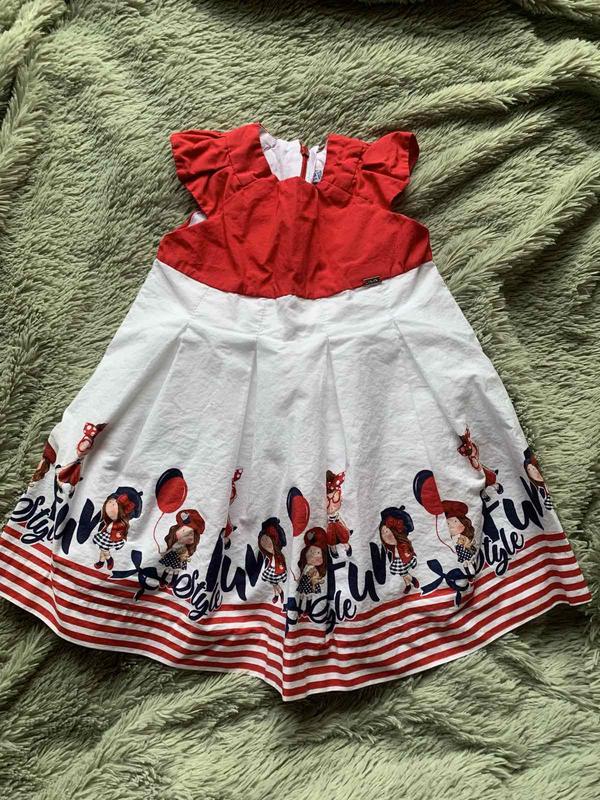Удобное летнее платье для девочки в возрасте от 9м до 1 года (зависит от индивидуальных параметров ребенка). Рекомендована на рост 86см. Платье выполнено из материала 100% хлопок, имеет белую подкладку внутри, тоже 100% хлопок. Сзади платье имеет застежку для большего удобства.
