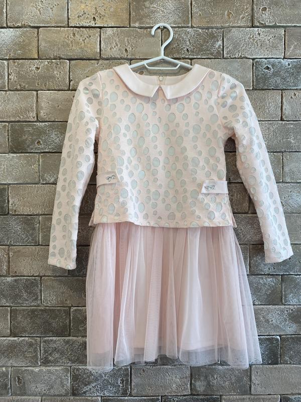 Святкова дитяча сукня рожево-персикового кольору (130 см, 7–9 років) Продається ніжна та святкова дитяча сукня рожево-персикового кольору — чудовий варіант для свят, фотосесій або особливих подій. Характеристики: • Розмір: на 7–9 років / 130 см зросту • Верх: з довгим рукавом • Низ: підкладка з сіткою — надає об’єму та легкості • Застібка: змійка на спинці • Колір: ніжний рожево-персиковий Сукня виглядає дуже святково та ошатно, водночас зручна у носінні. Стан: Сукня в гарному стані, є незначні дефекти — картишки під пахвами та на декоративних елементах, що нагадують кишені. На загальний вигляд це майже не впливає, можна легко доопрацювати або залишити як є. Пишіть у повідомлення — надішлю додаткові фото або виміри за потреби.