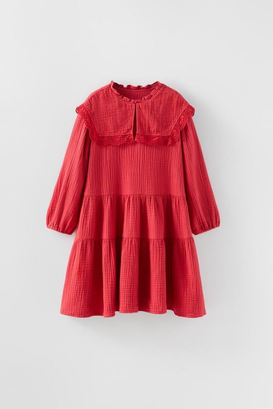 Красное платье с длинным рукавом для девочки zara испания размер 140
