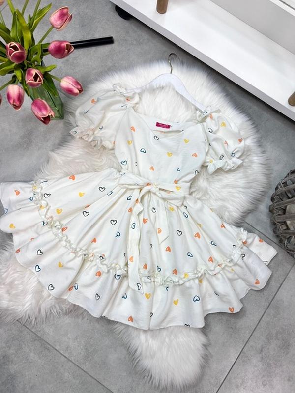 Белоснежная сукэнка с принтом - идеальный вариант для праздника, фотосессии или просто волшебного дня. Модель с юбочкой, воланами и бантиком на талии смотрится очень нежно и празднично. Пухкающий рукавчик на резинке добавляет комфорта и шарма. Мягкая ткань приятная к телу и не сковывает движений. Тканина котон Цена 1190грн От плеча длина/пог 140-65/39 146-67/40 152-72/42 158-76/45 164-80/46 Детская одежда