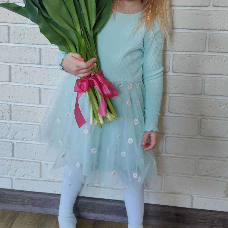 Нежное платье для девочки на рост примерно 100-110 см. При необходимости пришлешь замеры.