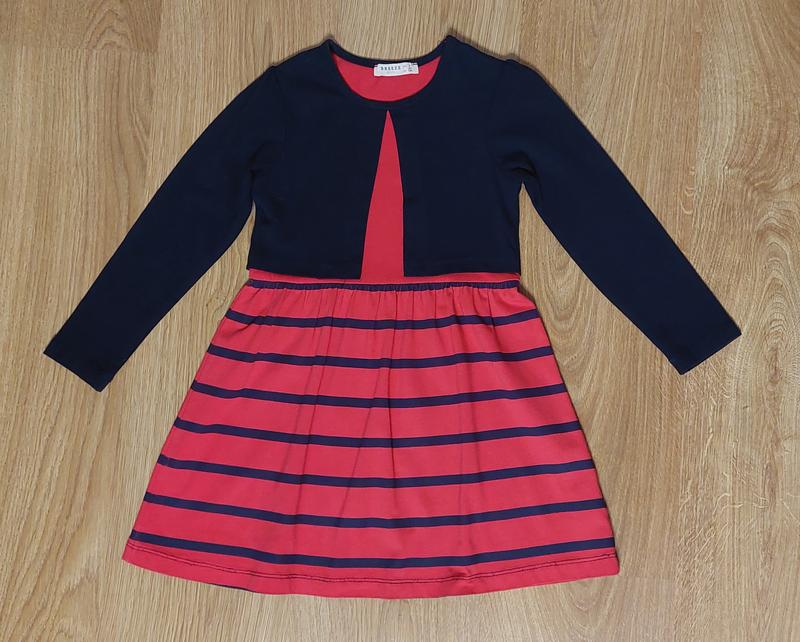 Красивое полосатое платье от турецкой торговой марки "BREEZE". Материал хлопок хорошего качества, да очень приятное к телу. Платье в идеальном состоянии. Размер - 104 - 116 90% - бавовна 10% - еластан Длина платья - 58,5см. длина рукава - 38см