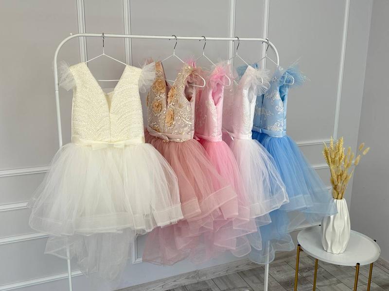Ціна 1430 грн. Код 205 Сукня на випускний та святкові події, зі шлейфом : 🌷 Верх фатин, атласна підкладка; Ззаду замочок та корсет; 🌷 Низ 4 слої фатину та підкладка; 🌷 Накладений платіж на НП. Довжина спереду/довж позаду / висота корсету / ширина 6-7р. 64/90/31,5/ 32см Мм