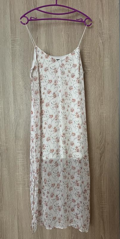 Плаття міді,молочного кольору на бретелях,з не великими розмірами по сторонах Розмір S-M Для дівчат низенького росту (160см) Можна стилізувати з футболкою