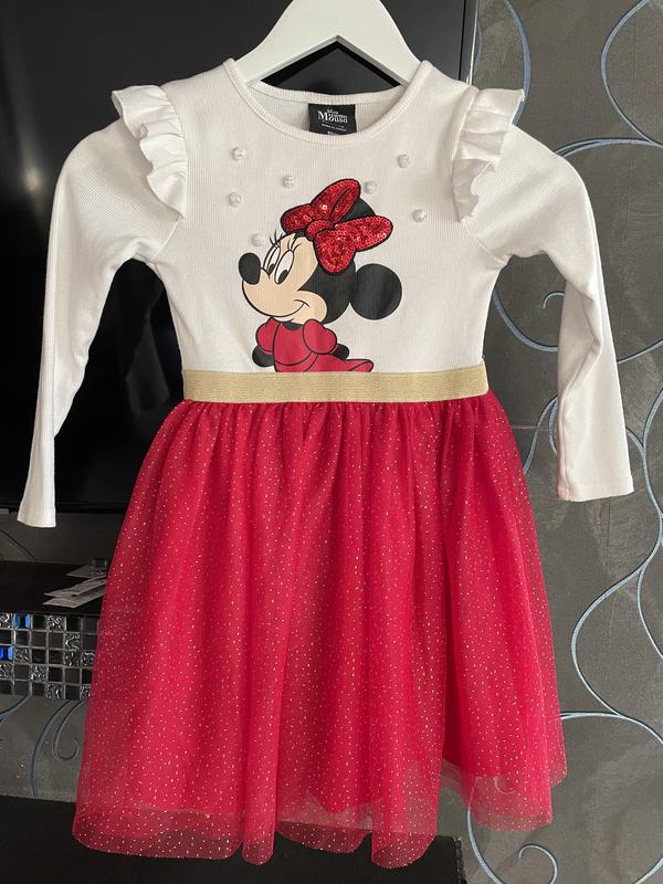 Платье Disney Minnie Mouse в идеальном состоянии. Верх ткань в рубчик с рюшками на плечиках, низ шифон на подкладке. Размер 6/7 лет. Длина 66, рукав 41, пог 31.