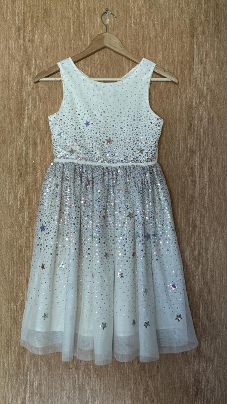 Для дівчинки на зріст 125 - 155 см. Ширина в груді -38 см Довжина сукні 90 см Колір ніжно персиковий , молочний з паєтками