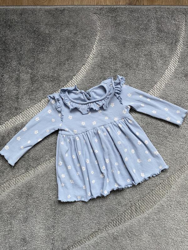 Гарне платтячко голубого кольору на дівчинку з милими рюшами H&M. Розмір 9-12 місяців. Стан ідеальний. Склад котон.