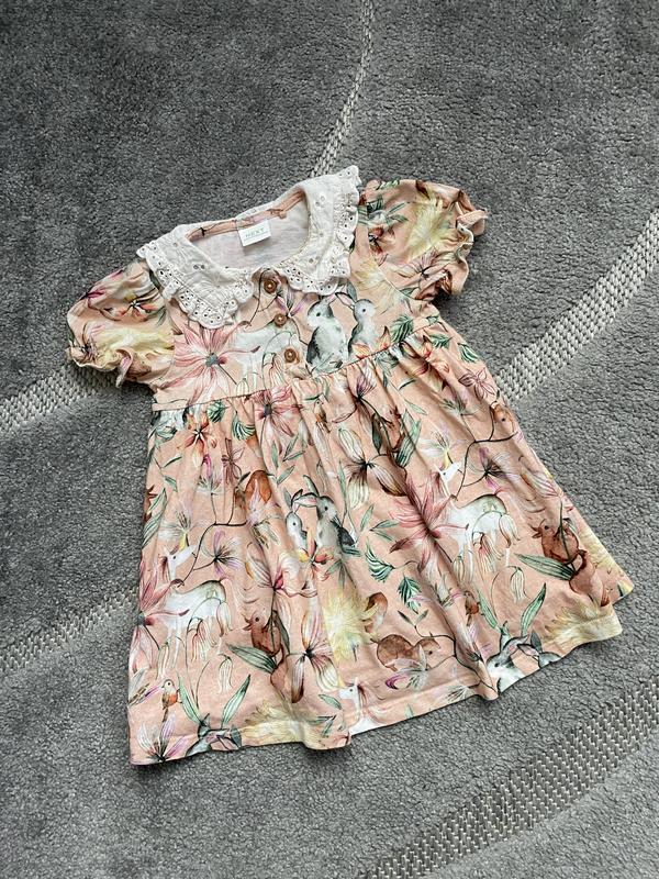 Дуже гарна сукня з мережевним комірцем від Next. Стан ідеальний. Розмір 9-12 місяців. Склад котон.