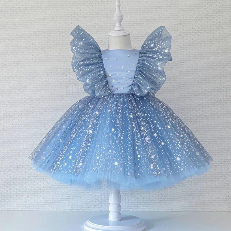 🌹чарівна святкова сукня 🌹 колір блакитний / верхній шар фатину темніший , зірочки срібні верх: атлас , бавовняна підкладка, рюші тришарові низ : три шари фатину +дві шифонові підкладки ,пишне застібається на змійку бантик кріпится на кнопки ЗАМІРИ довжина повна / від плеча до пояса / ширина по грудях ✅110р 66/25/32 ✅120р 70/26/34 похибка +-1см НАЯВНІСТЬ 110р 10шт 120р 5шт
