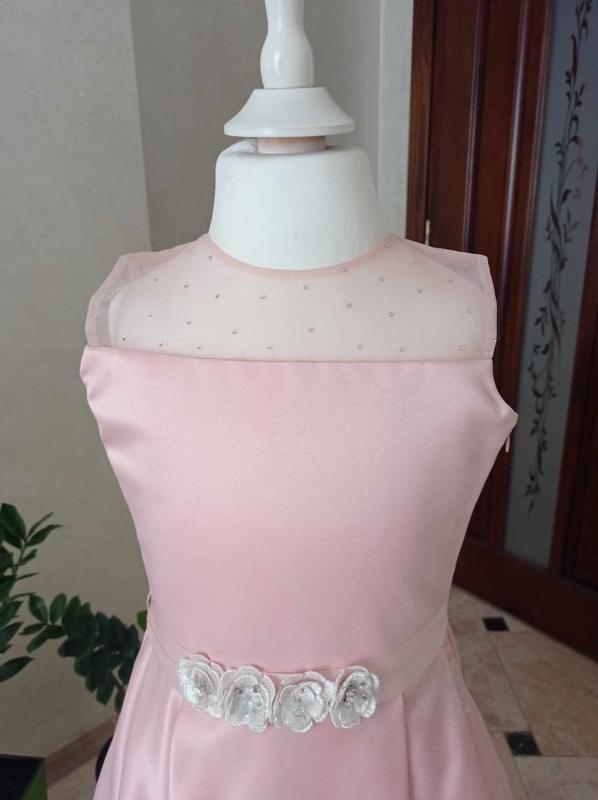 Невероятно красивое, розово-пудровое атласное платье для маленькой принцессы, ваша девочка в таком чуде стопроцентно не останется незамеченной!) Кокетка - сеточка с камушками-стразами. Низ - подклад из фатина, держащего красивую, пышную форму. Платье длинное. Удивительный акцент-отделка на талии - цветочки со стразами. Для выпускного в садик или других солнечных оказий. Размер 116, для девочки 5-6 лет. Смотрите все мое объявления, есть много изысканных платьев для девочек всех возрастов!