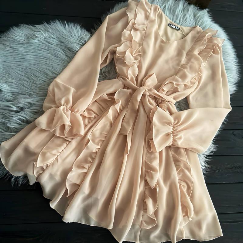 Шифонова сукня Бежева Цена дроп 780 грн Тканина: шифон Платье на трикотажной подкладке Замеры: р.140 длина/рукав/пог 72/56/40см р.146 длина/рукав/пог 76/58/42см р.152 длина/рукав/пог 78/60/44см р.158 длина/рукав/пог 81/63/46см р.164 длина/рукав/пог 85/65/47см Длина рукава указана от плеча #платье