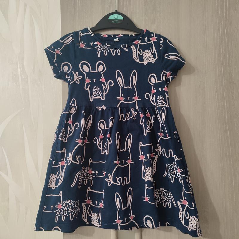 Платье на девочку 1-2 лет Детское платье на девочку 18-24 месяцев Котон, тканина не тягнеться Платье принтовано с котятами и зайцами В хорошем состоянии без нюансов