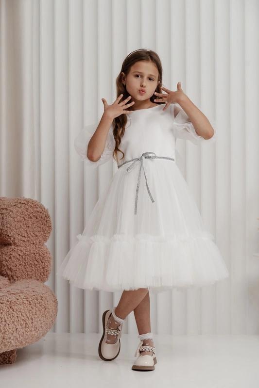 ✅Перед заказом проверьте, пожалуйста замеры, и уточните наличие размера. 🔹Безопасной оплаты нет Наложка является новой по почте по предоплате 200 грн. Укр почта по полной оплате. 🥰🥰Шикарна сукня для принцес!!!👑👑 Ткань - королевский атлас и евросетка По спинке застегивается на молнию цвет - БЕЛЫЙ Рукав - 3/4 122-3 шт 128-3 шт 💜122р.длина платья - 71,пог - 34 💜128р.длина платья - 74,пог - 35 ❤️Цена 920 грн